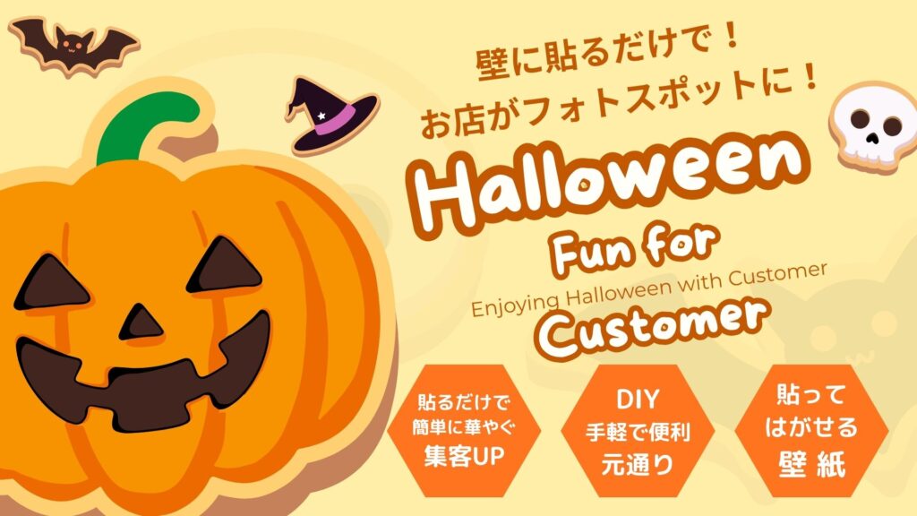 貼ってはがせる壁紙を使いハロウィン仕様のお店にプチリニューアル!